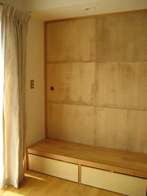 家族室からは一段上がります。 大きな襖には、耳付きの和紙を張りました。