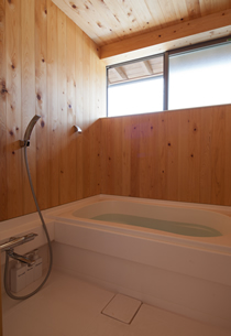 画像下左: お風呂はハーフユニットバス