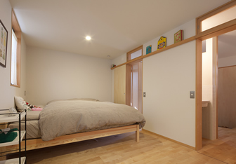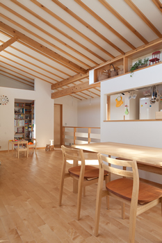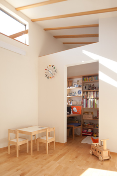 今までの仕事 -東大和 みのりズム-05 家族がくつろぐ場所がのびやかに広がりながら、夫婦や子供たちが自分たちを表現できる場所も大事。 夫の書斎と、雑貨が好きな妻の趣味が展開できる背景と、少年が遊べる場所と、子供たちがいつか個室を持てるように。 この住宅と社会との関係性も同じです。節度を持って関係するために、ある距離感を持ってプライバシーを大事にする。 自分がちゃんとしていてはじめて、ヒトには思いやりが持てますもんね。遠慮がちで腰の低い住み手ならではの要望であります。