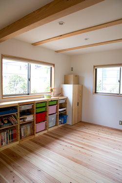 一階のこの場所は開け放つと広々感じられるつながりで、今は兄弟が泊まりに来たり宿題したりする場所として利用してます。
