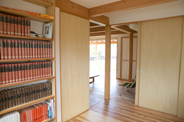 将来は畳を敷くことも考慮して床の計画をしています。ご両親から譲ってもらった文学全集がずらり。